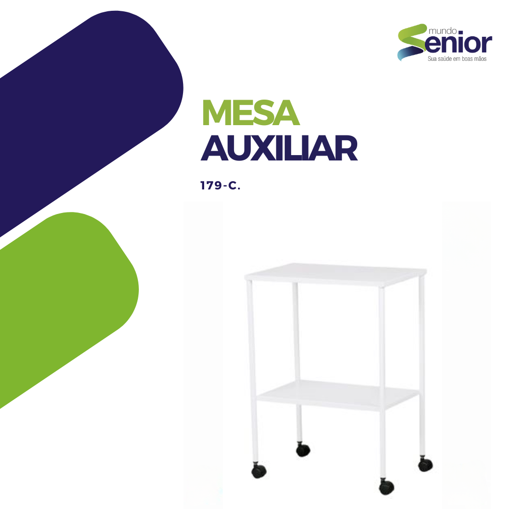 Mesa auxiliar construída em tubos pintados de 7/8” x 0,9mm de espessura. Tampo e prateleira construído em chapa pintada de 0,75mm de espessura. Pés com ponteiras.