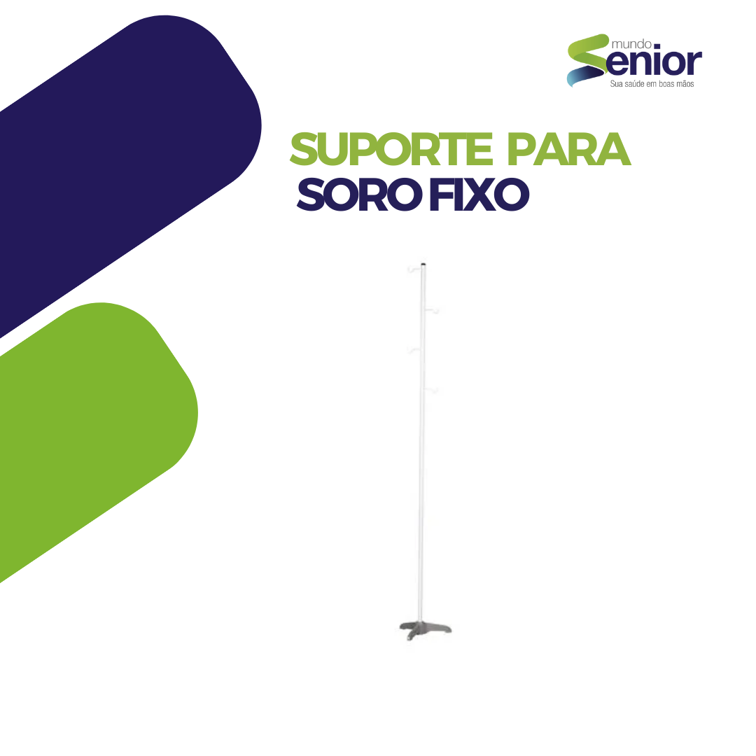 Suporte para soro altura fixa, construído em tubos pintados de 7/8” x 0,9mm, com tripé fundido. Altura 2,00m